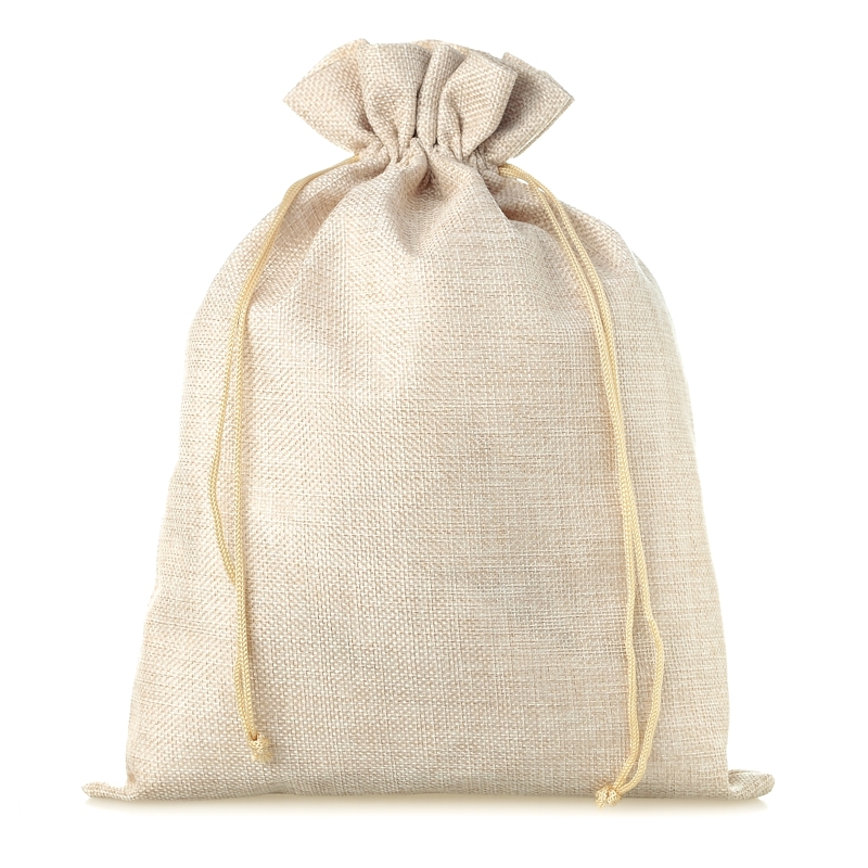 1 stuks jute zak in de kleur lichte natuurlijke in het formaat 26 x 35 cm.De door ons aangeboden zakjes zijn vervaardigd van natuurlijke of synthetische jute, die gekenmerkt wordt door sterkte en het karakteristieke “touwtjesuitzicht”. Beide stofzakjes absorberen vocht en geven vocht af, daarom verdragen ze goed variërende omgevingsomstandigheden.Jutezakjes gaan uitstekend samen met natuurlijke decoraties, biovoeding, natuurlijke geuren (bijv. als zakje voor lavendel) en andere ecologische producten, waardoor ze perfect bijeenkomsten van het type vintage en evenementen gestileerd op een dorpsklimaat en een Oud-Pools traditioneel feest benadrukken.Ons aanbod jute zak bevat eveneens modellen die speciaal in veel verschillende kleuren zijn geverfd, daardoor zal iedereen een jutezakje kunnen vinden dat ideaal voor hem is.