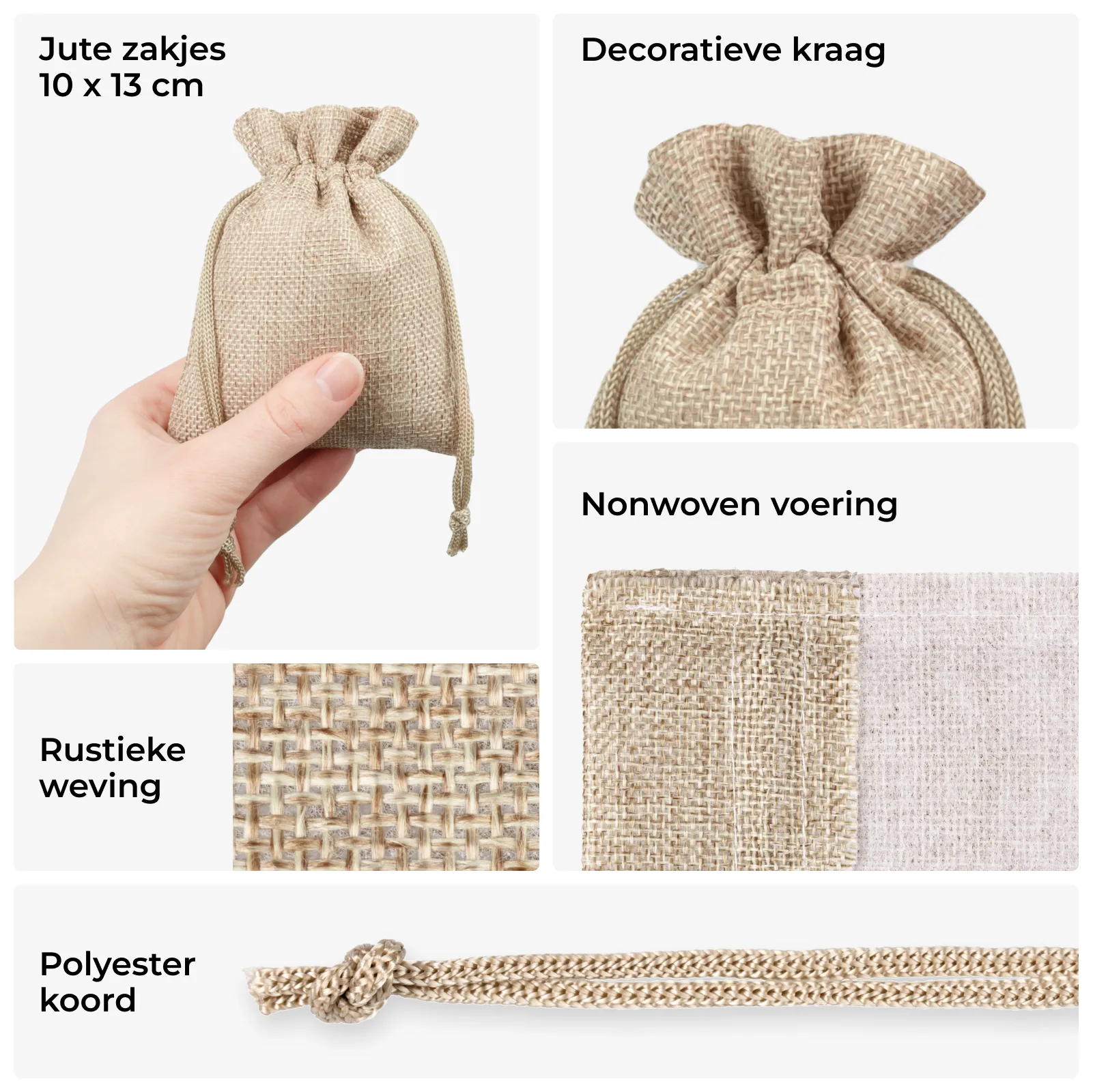 10 stuks Jute zakjes 10 x 13 cm – natuurlijke kleur