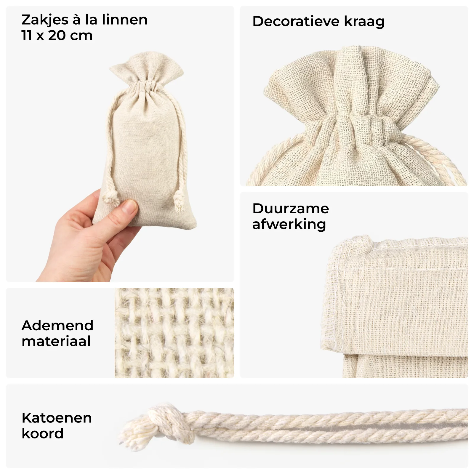 10 stuks Zakjes à la linnen 11 x 20 cm – natuurlijke kleur