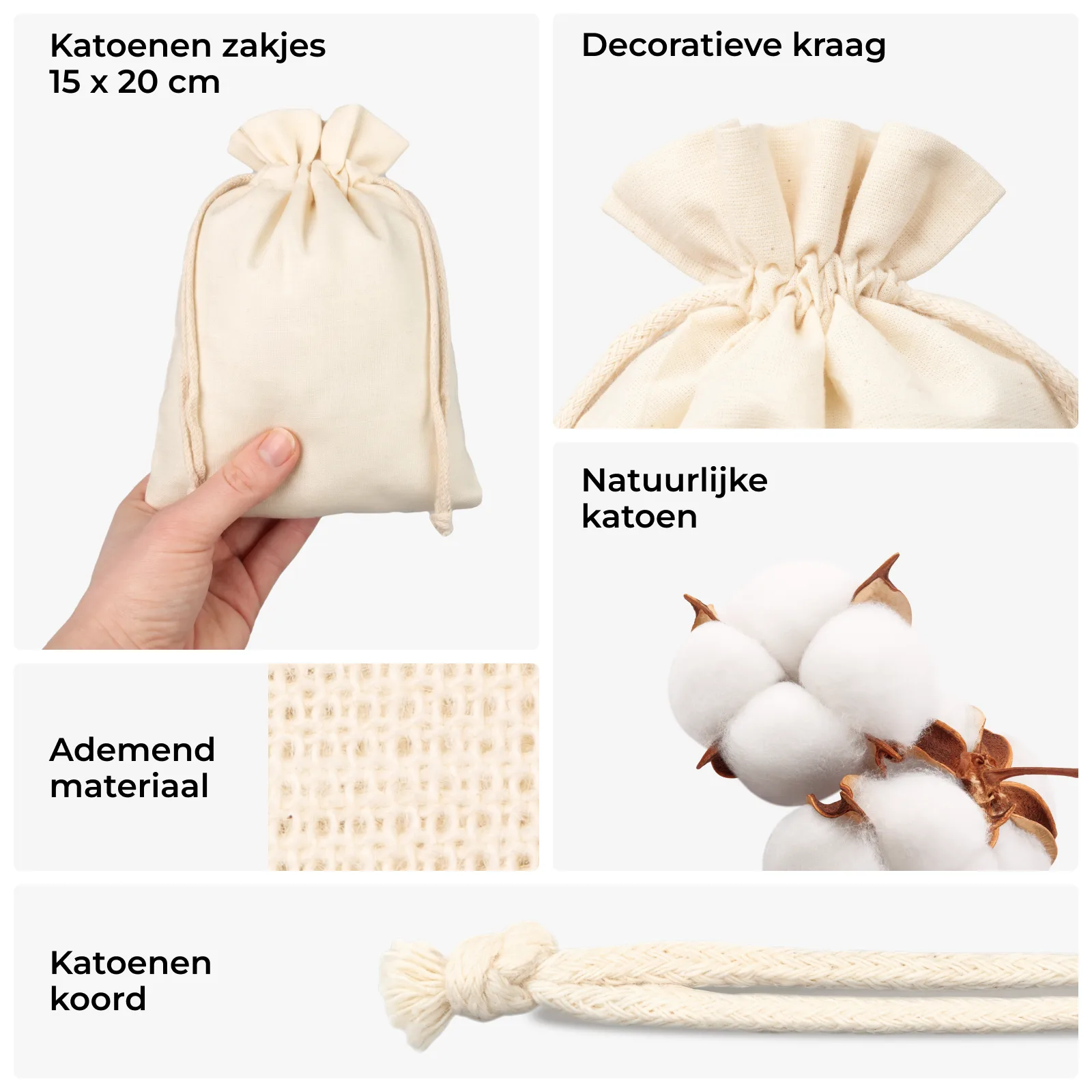 5 stuks Katoenen zakjes 15 x 20 cm – natuurlijk