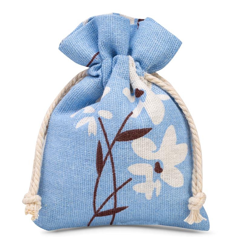 5 stuks Zakjes à la linnen met print 10 x 13 cm – natuurlijk / blauwe bloemen