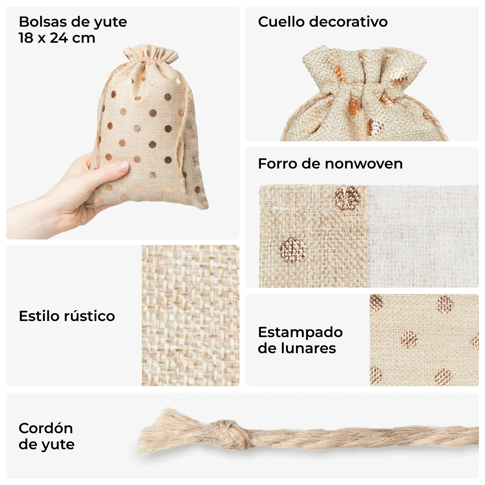 Elegante jute zakjes 18×24 cm met gouden stippen – geef je merk een luxe uitstraling