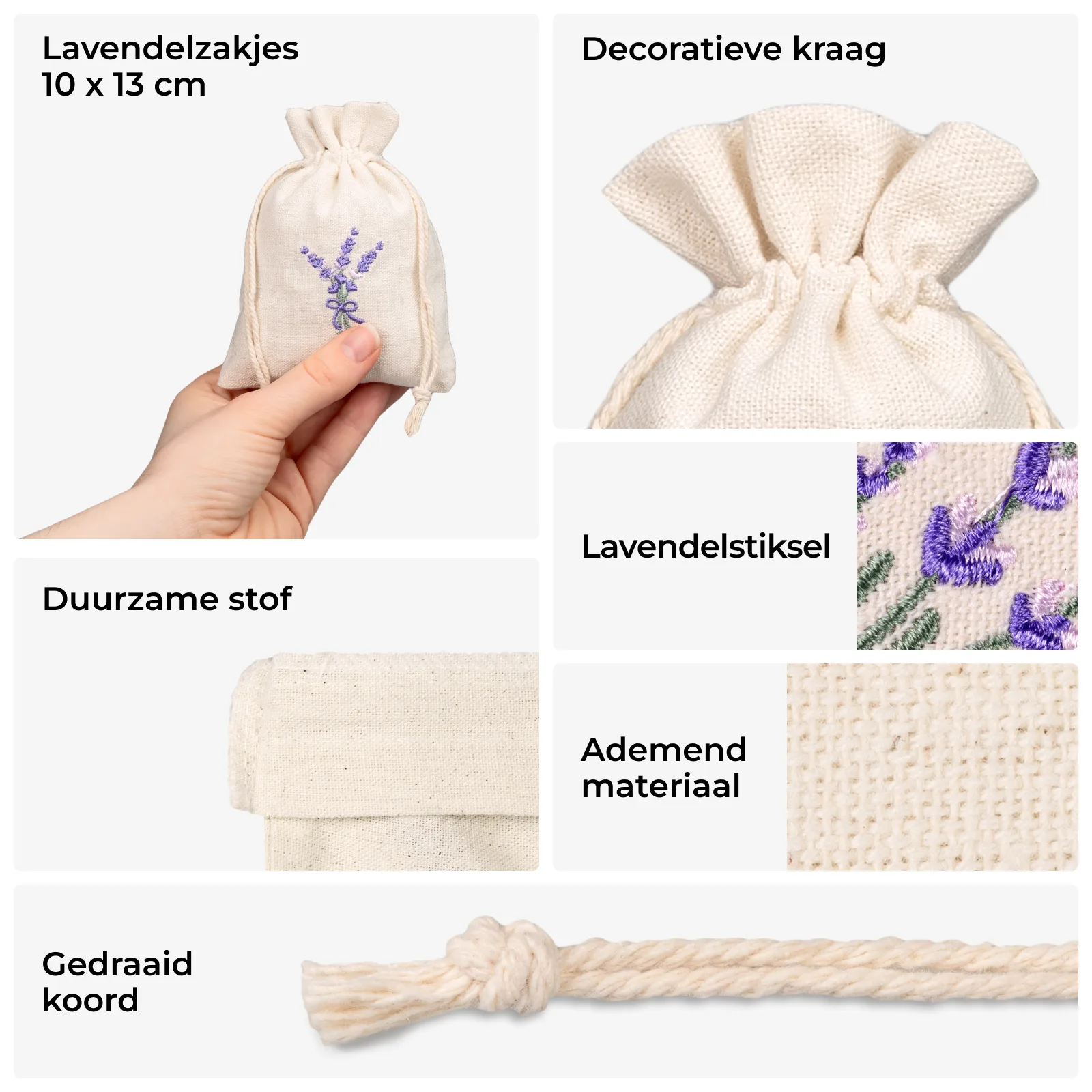 Formaat 10×13 cm – ideaal voor lavendel, potpourri, kleine zepen of sieraden,